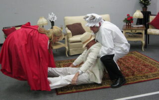 The Perry’s have it all — money, friends and status in the community — but their marriage seems to have landed in a rut. As the show opens, the Perrys make their traditional New Years resolutions together: Matthew declares to Julia that he wants something more . . . to be able to travel abroad, to play golf everyday, to spend more time at his club. Thus, he resolves to kill her by next New Years Eve so he will be free to pursue his heart’s desires. Julia takes his resolution in stride and resolves to still be alive a year later. Their games begin and they let no one stand in their ways as they attempt to keep their resolutions as the year goes by. To liven things up, we add the Perry’s spoiled, dingy daughter Bunny, her bright and forgiving boyfriend Donald and their plans for their wedding on the following New Year’s Eve. We also have to deal with Buttram, the Perry’s longtime butler who harbors a dreadful secret – or two. Entering into the fray is a bumbling police detective named Plotnik who tries to figure out “who-done-it” — that is if something really has been done. Who will succeed in his or her resolution — and who gets caught in the crossfire? This hilarious comedy has lots of surprises, right up to the end.