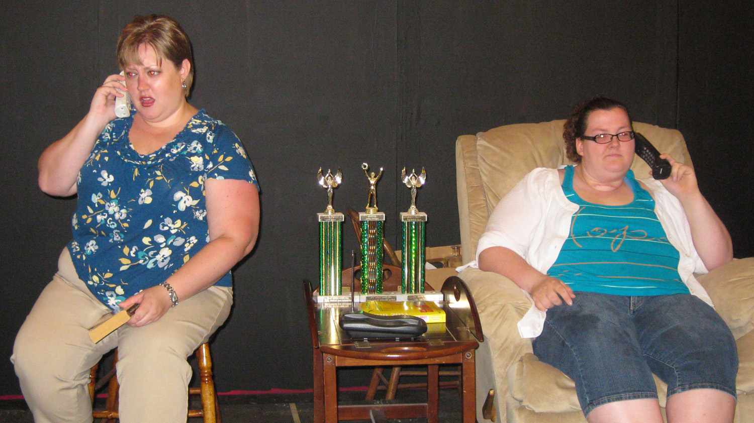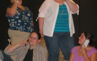 “Belles” is a comedic drama in two acts and 45 phone calls. The six Walker sisters grew up in a dysfunctional Southern family with an alcoholic father and a mother who covered for him. Momma (who is neither seen nor heard) is experiencing another of her “medical crises,” and widowed sister Peggy, who resides with and cares for Momma, is determined to let her sisters know what is going on. During the course of one weekend, the sisters, who are all grown women living scattered across the country, communicate as best they can — by telephone. As the phone calls circulate among the sisters, we learn more and more about each of the women, who are trying to cope with their own lives and their own problems. The show runs the full spectrum of emotions. With humor, anger, compassion, and finally love, they help each other through the emotional highs and lows of their lives as they deal with both the present and the past.