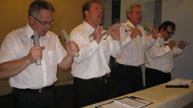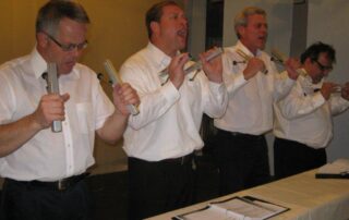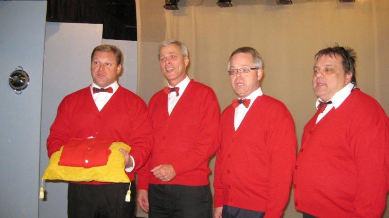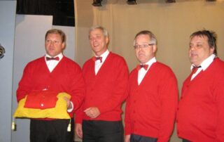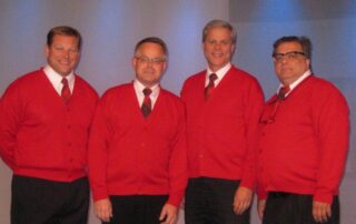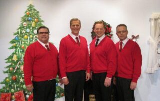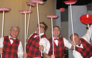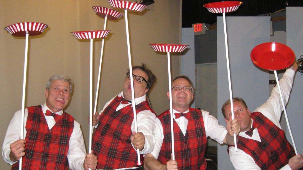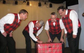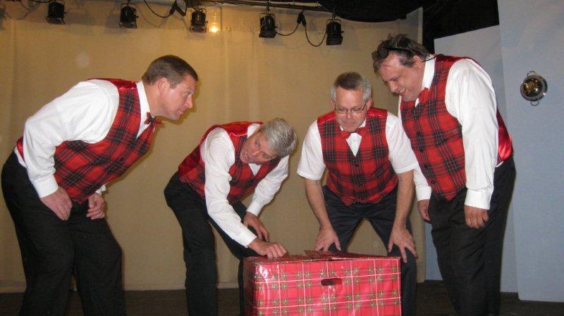 The Plaids were a 1960s-style young male vocal quartet, tragically killed in a collision with a busload of Catholic girls as they were driving to their first big concert. In the original production, “Forever Plaid”, the boys find themselves on stage – returned from heaven to give one big concert. In “Plaid Tidings” the Plaids once again return to earth (with some urging from a voice-over by Rosemary Clooney) to bring some good cheer to Earth during the Christmas season. Familiar antics of the four guys, such as the Ed Sullivan and the Carmen Miranda sketches take on a holiday theme. The production includes a number of familiar songs sung by the quartet in their brief return to earth.